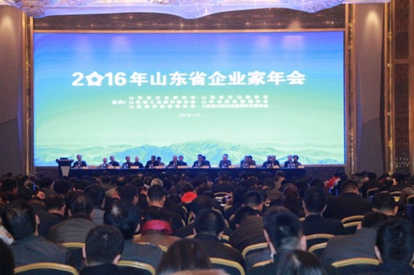 2016年11月24日由山东省企业联合会、山东省企业家协会、山东省工业经济联合会、山东省质量管理协会、山东省设备管理协会、山东省企联企业管理科学基金会主办的2016年山东省企业家年会在泰安市召开。会议主题:“激发企业家精神,发挥企业家才能”。会议主要任务:认真学习贯彻习近平总书记关于企业家队伍建设的要求,落实郭树清省长在全省加强企业家队伍建设工作会议上的讲话精神,客观分析当前企业面临的形势,特别是在“十三五”开局之年,如何进一步解放思想,积极作为,主动适应经济发展新常态,加快转方式调结构,激发企业家创新创业的积极性、主动性和创造性,为推动我省经济文化强省建设进言献策。大会邀请了中共中央政策研究室原副主任,第十一届全国政协经济委员会原副主任,中国工业经济学会会长,著名经济学家郑新立同志做“中国经济转型升级的战略选择”主题报告。省经信委副主任王信出席会议并讲话,省“五会”、省国资委、省总工会及泰安市等有关领导同志出席会议,来自全省各行各业的企业家代表共800余人参加了会议。