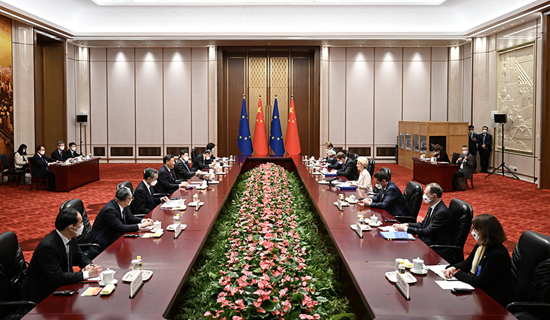 冯德莱恩表示,中国拥有悠久历史和深厚文化,欧中文明交流互鉴对双方和世界具有积极影响。欧中在应对气候变化等全球性挑战和政治解决地区争端问题上拥有很多共识,双方应该共同努力,为维护世界和平稳定作出贡献。欧方完全不赞同搞“脱钩断链”,希望同中方加强交往对话,尽早重启三个对话机制,开展更多互利合作。