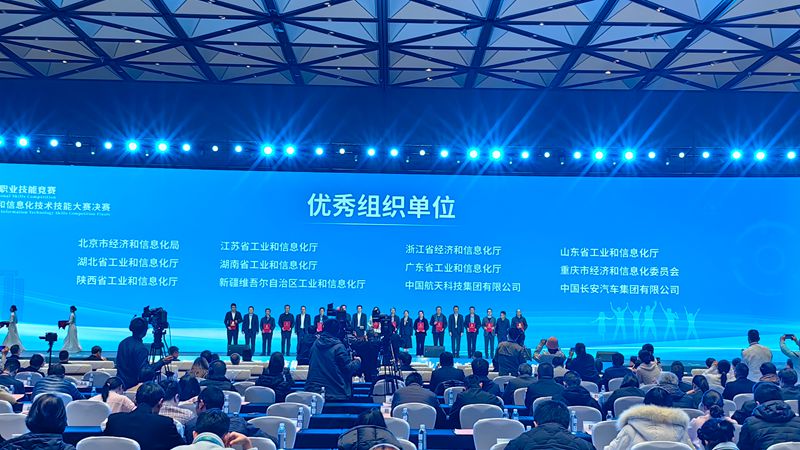 经过激烈角逐,山东代表队表现亮眼,共有5支队伍斩获全国奖项。其中,烟台职业学院、聊城市技师学院、滨州市技师学院选手分别在智能网联新能源汽车、RISC-V等架构芯片开发与系统应用、制造业数字化转型赛项中荣获职工组二等奖;济宁市技师学院选手获工业大数据赛项职工组三等奖,济南职业学院选手获智能网联新能源汽车赛项学生组三等奖。此外,山东省工业和信息化厅连续3届蝉联全国“优秀组织单位”称号。