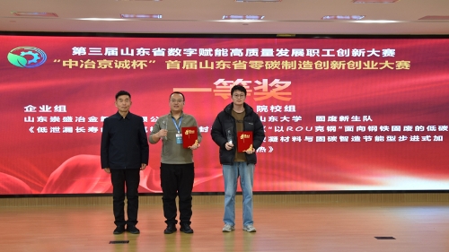 本次大赛分设院校组、企业组两大组别,经多轮严格评审与激烈角逐,最终评选产生一等奖2项、二等奖4项、三等奖14项。其中,山东大学报送的《“以 ROU 克钢” 面向钢铁固废的低碳胶凝材料与固碳智造》摘得院校组一等奖,山东崇盛冶金氧枪有限公司申报的《低泄漏长寿命转炉氧枪二次密封装置》荣获企业组一等奖。
