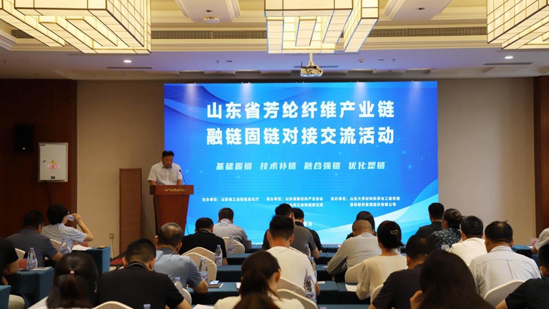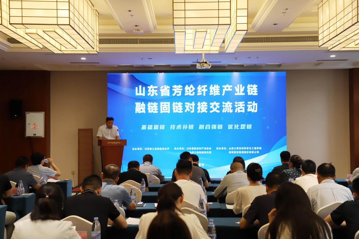 8月7日,全省芳纶纤维产业链融链固链对接交流活动在烟台举办。省工业和信息化厅二级巡视员龙希江出席会议并致辞。