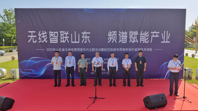 为展示无线电创新应用与管理成效,加强航空铁路频率保障能力,9月16日至18日,山东省工业和信息化厅在聊城市组织开展2025年“无线智联山东·频谱赋能产业”山东省无线电管理宣传月主题活动暨航空铁路专用频率保护监测技术演练。省工业和信息化厅二级巡视员孙洪忠出席活动并讲话,聊城市工业和信息化局党组书记、局长解志超致辞,省工业和信息化厅无线电管理办公室主任李涛主持。