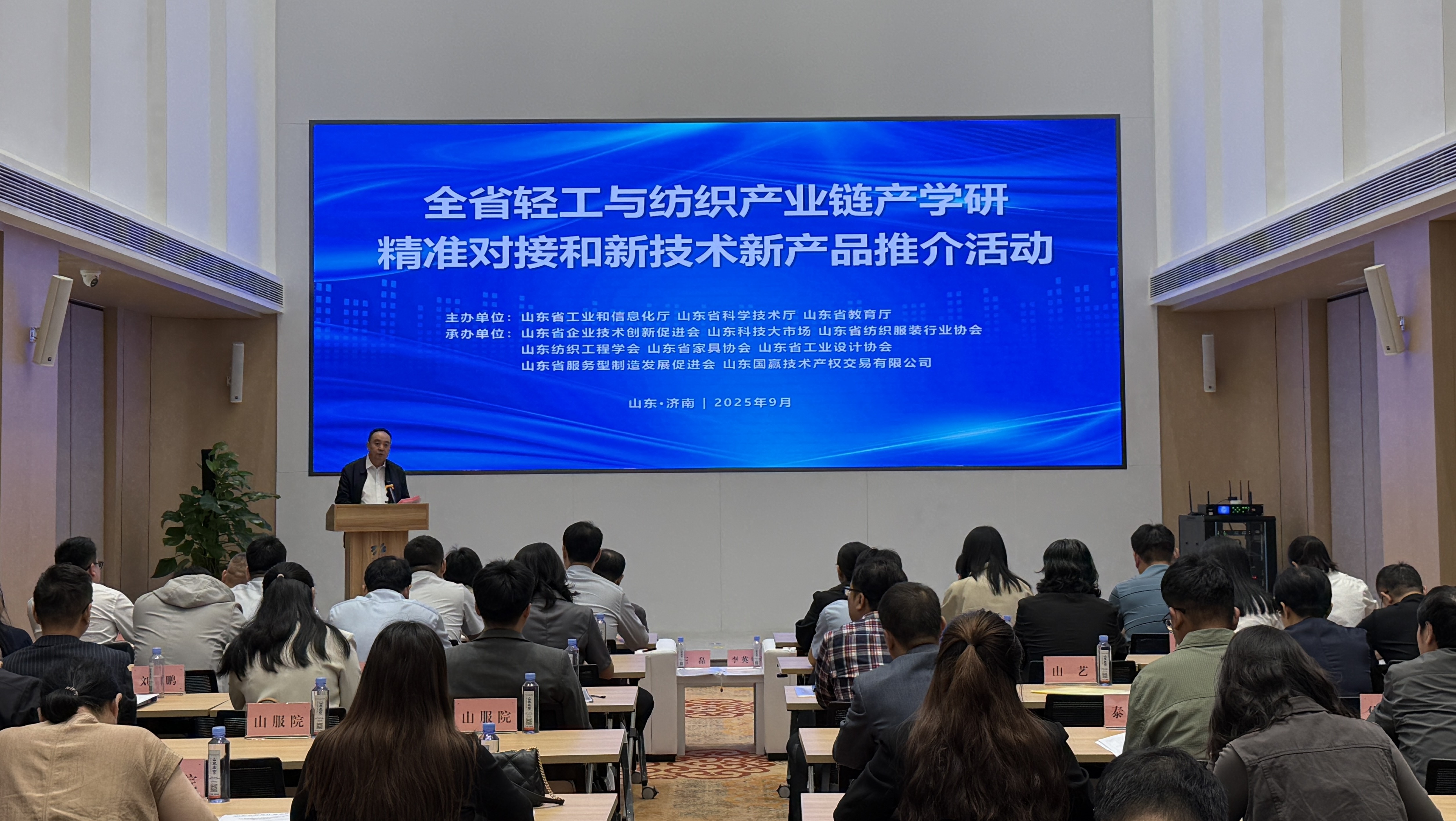 9月24日,由省工业和信息化厅、省科技厅、省教育厅联合主办的全省轻工与纺织产业链产学研精准对接和新技术新产品推介活动在济南成功举办。省工业和信息化厅二级巡视员李英峰出席活动并致辞。
