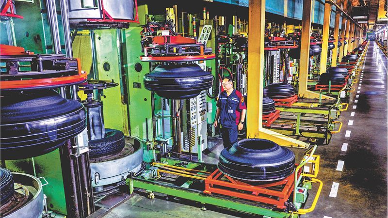 图为浦林成山(山东)轮胎有限公司的智能化生产车间。